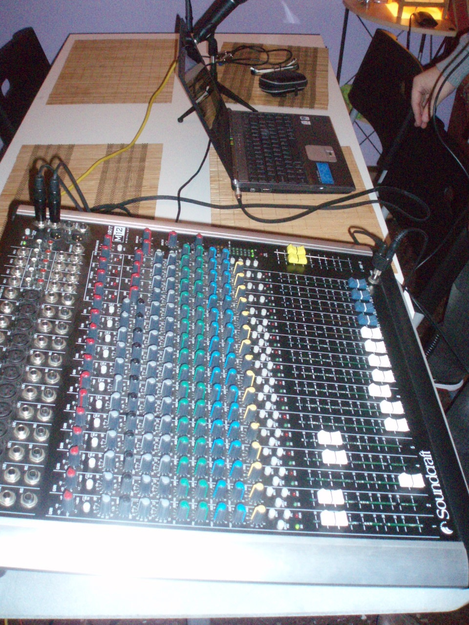 «Hasta 2010 grabábamos con mesa de mezclas profesional, una Soundcraft Spirit y un Vaio, pero viendo que los resultados son iguales que con la Behringer pequeña, seguimos grabando ahora en formato mas reducido pero con nuevo portátil, usamos el HP beats audio edition que me va realmente muchísimo mejor para usar los programas de edición de audio y para la postproducción.»