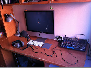 Ahí en la foto podéis ver un iMac 24′ de 2009 que es la base de mi sistema. Grabo con Amadeus Pro y luego monto con GarageBand. Amadeus Pro tiene poderosos filtros anti-ruido y una normalización de audio que causa cero distorsión. Desgraciadamente se les ha ido la mano en el precio de la nueva versión y por eso he decidido no actualizar y seguir con la antigua, que es plenamente funcional bajo OS X Lion.
